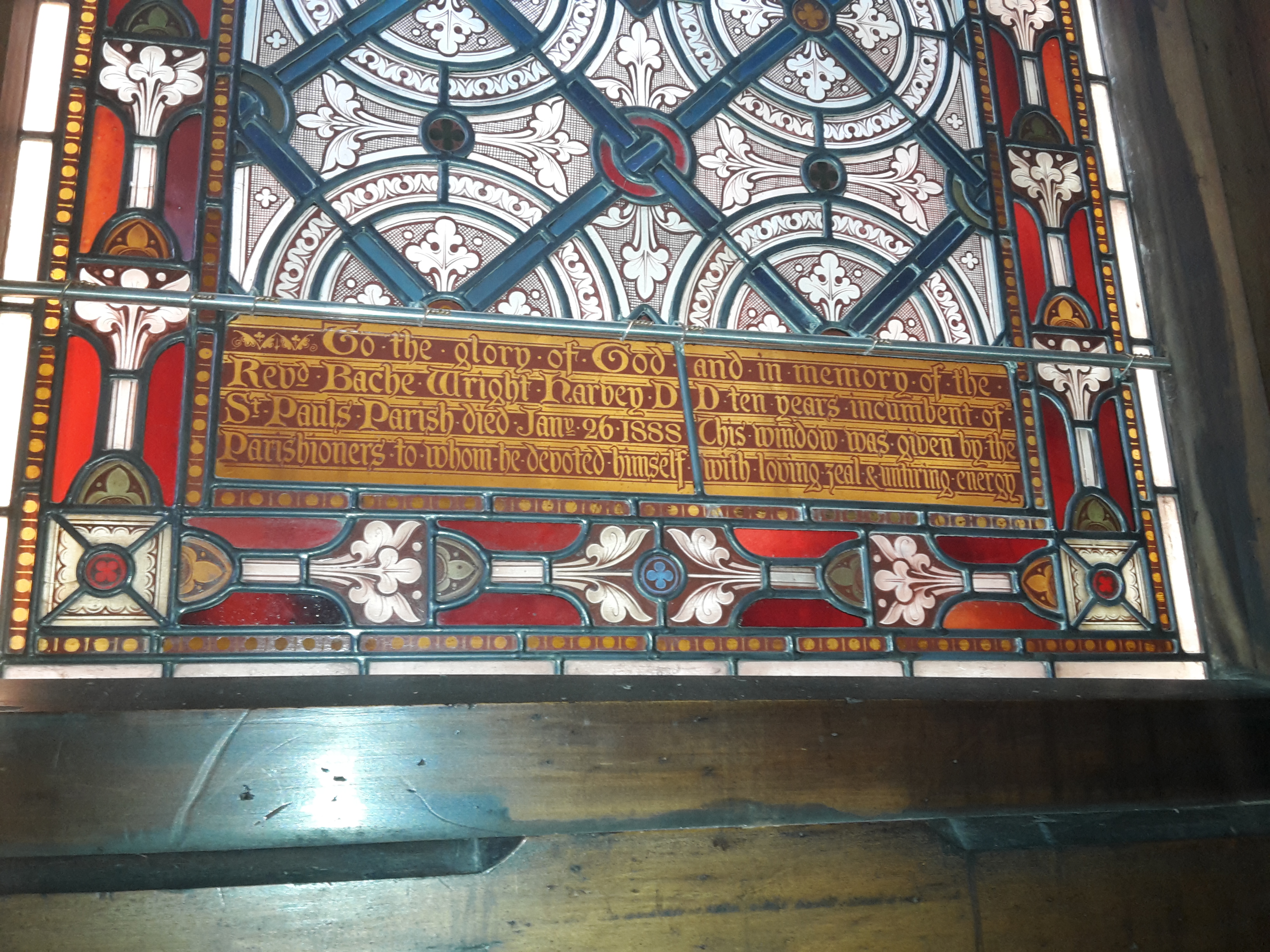 After his death in 1888 the parish put a memorial window to Harvey in the north transept. The inscription on the window reads that it was: