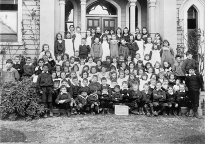 Image: The Thorndon Parish School, Thorndon, c1890s. Ref: 1/2-089203-F. Alexander Turnbull Library, Wellington. http://natlib.govt.nz/records/22755382 (This image is a close up detail from the larger image above).