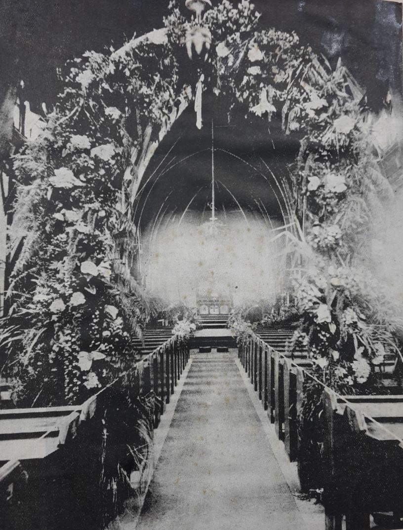 This rather lovely image is of the church decorated for the wedding of Phoebe Seddon, daughter of Premier Richard John Seddon, to Frank Dyer, in 1897. The church had been decorated by Phoebe’s friends. One of the attendees wrote that ‘one thing I especially noticed was a large floral marriage-bell covered with lycopodium and white flowers, around this was a large wreath finished off with a true-lovers knot of white silk, on the ends of which were the bride and bridegroom’s monograms worked with silver thread’.