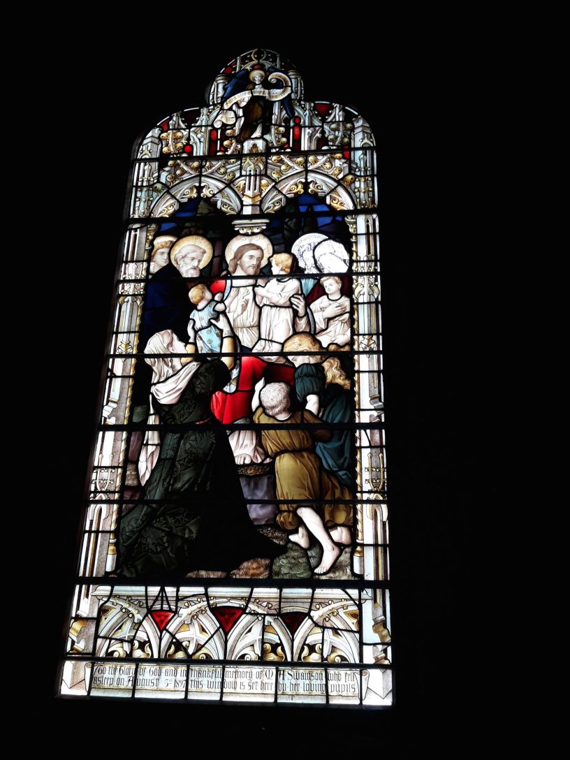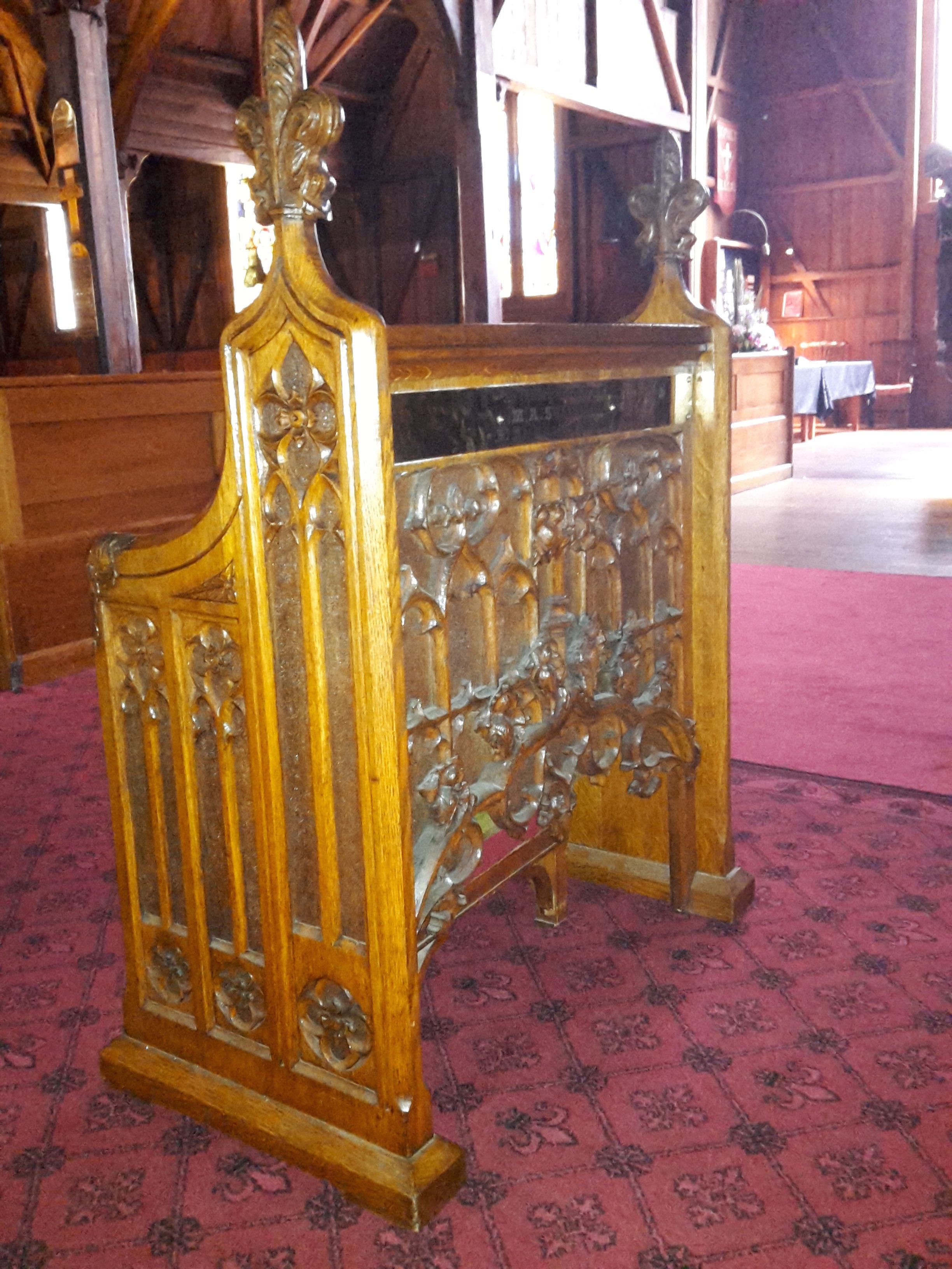 The window in her memory, installed a year after her death, was the gift from her loving pupils and was executed by Lavers and Westlake of London. The litany desk was made by Harriette Crawford, see here for the story.