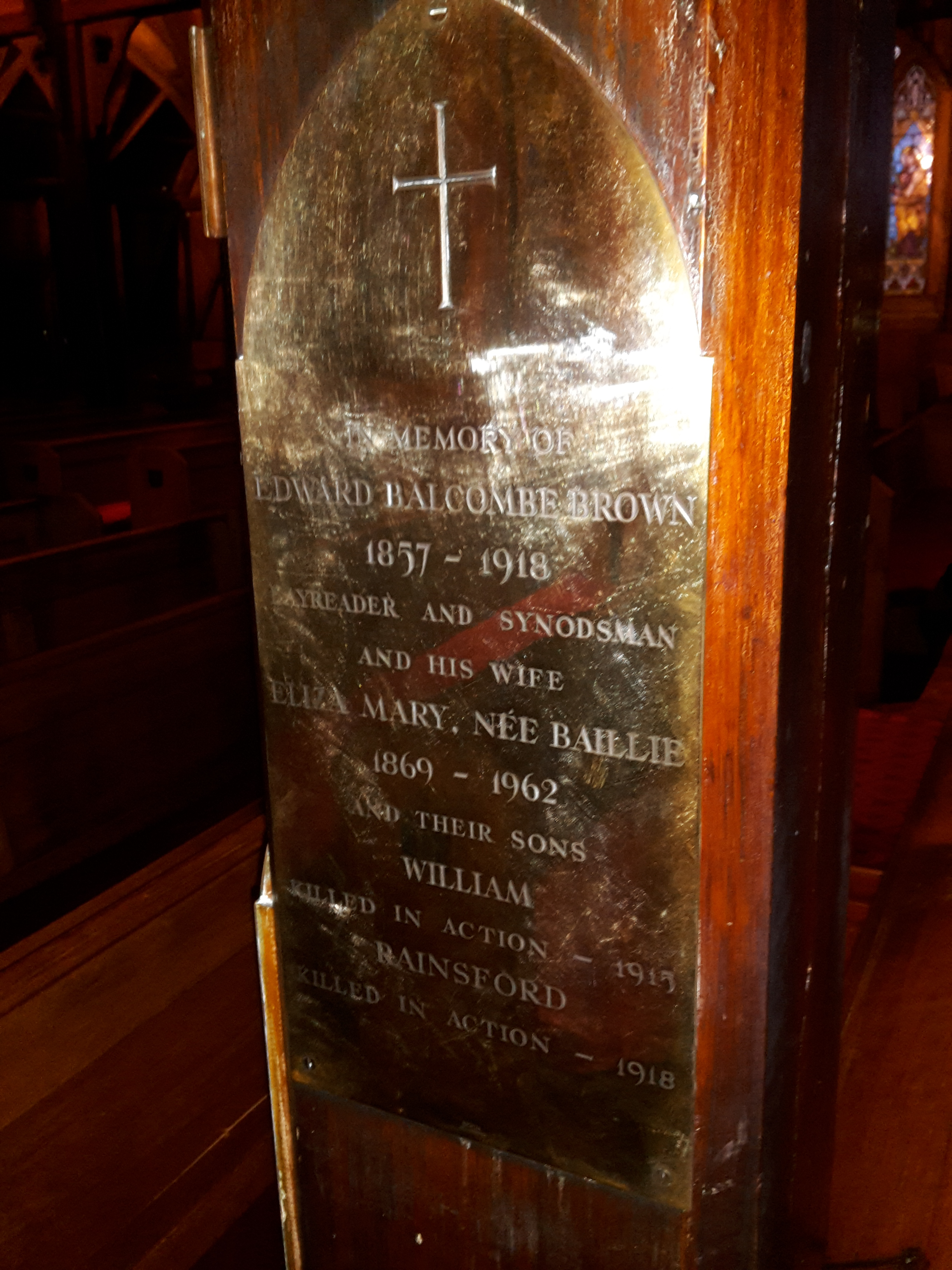World War One had a huge impact on New Zealanders’ lives and those at the church were no exception. Wellington lawyer Edward Balcombe-Brown and his wife Eliza Mary were closely involved with St Paul’s. Both of their sons, William and Rainsford, were killed in action while serving overseas.
