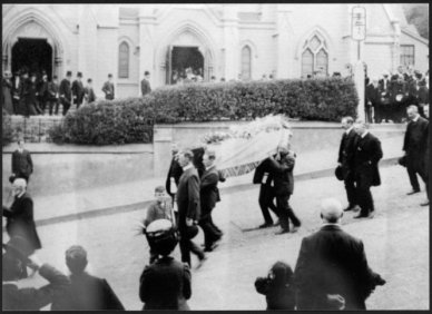 The woman, actually Te Rira’s daughter-in-law Ruhia, (pictured above), who had earlier become a Christian, saved the men by her action. Ruhia, with her husband Ihaia and her father in law Te Rira, became Anglicans and a whole pew of St Pauls was later apparently filled by various members of the Porutu family. Thomas McKenzie became a newspaperman in Wellington as well as becoming a City Councillor. When McKenzie died in 1911 the cloak was laid over his casket (as pictured below).![]()