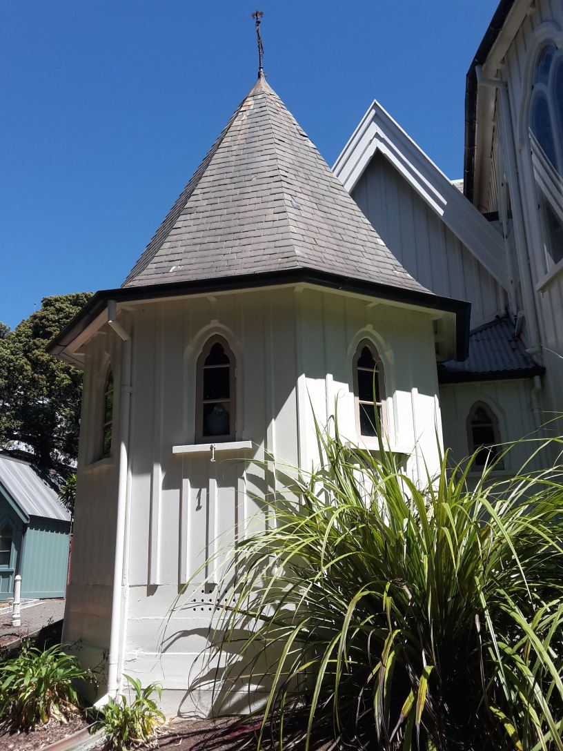 In March 1867 Bishop Abraham arranged for the deathly ill man and his wife to attend church at St Paul’s; the couple sat together in the beautiful little octagonal vestry room to hear the service; ‘he was greatly cheered and comforted by being able to go’, Rhoda wrote in her diary. The wooden octagonal vestry room, with its stunning turret roof, such a feature of the church, is much the same as it was when they sat there together, even though it has been moved 5m to the east, when the church was made larger.