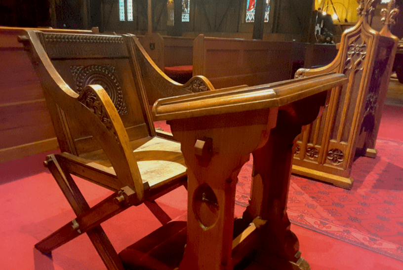 The chair was first mentioned on the 28th of October 1895 at a general meeting when a member brought up ‘sundry matters’ such as the church needing a suitable chair and desk for the Bishop. Therefore, just after Christmas 1896 the Evening Post newspaper reported that the Bishop ‘thanked his congregation for their gift of a chair and desk placed in the sanctuary for the use of himself and his successors.’