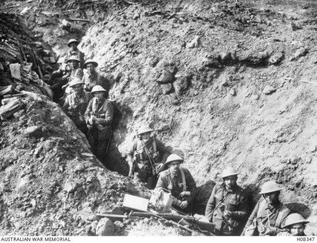 ‘Western Front. c. 1916. New Zealand soldiers after capturing and consolidating the Flers switch trench in France.’ (Donor British Official Photograph A187) National Library of Australia, https://trove.nla.gov.au/version/252034048